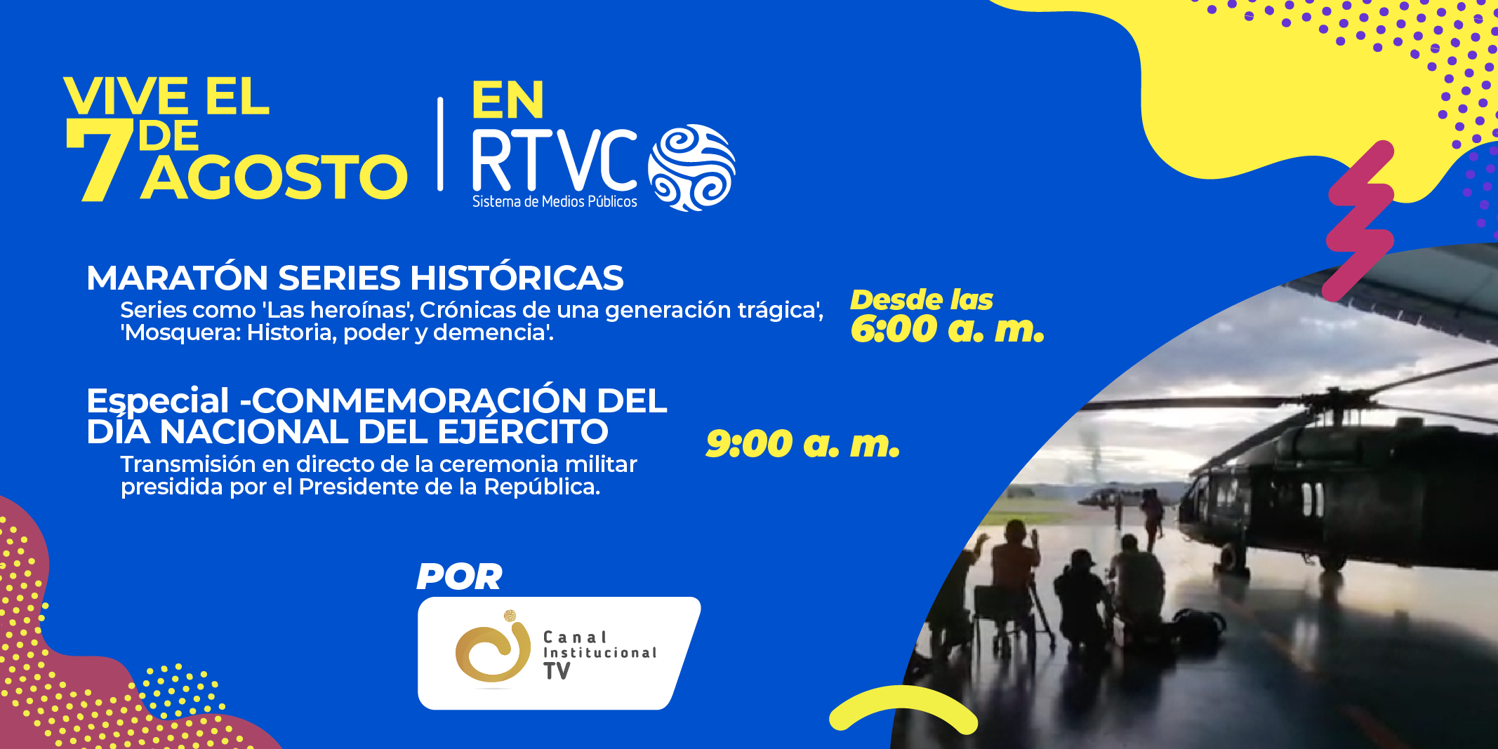 En Canal Institucional podrá ver el especial del Día Nacional del Ejército Nacional y la celebración de la Batalla de Boyacá desde las 9:00 a. m., así como la Maratón de las heroínas, con diferentes producciones relacionadas con las mujeres que marcaron la historia en el bicentenario.